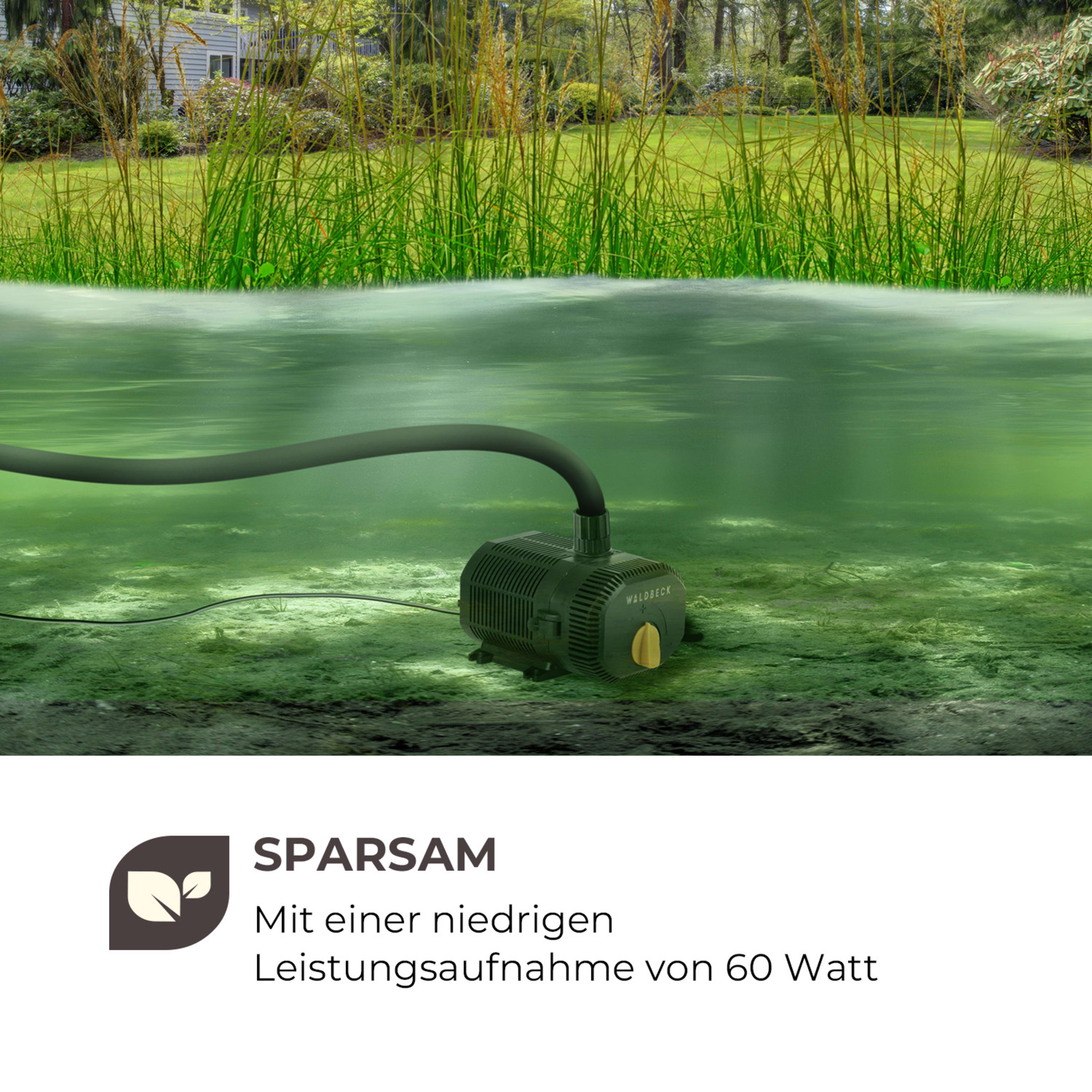 Die Waldbeck Nemesis T60 Teichpumpe ist ein dank ihrer starken Leistung, ihrer kompakten Größe und der flexiblen Nutzung ein starker Wasserförderer mit vielen Einsatzgebieten.