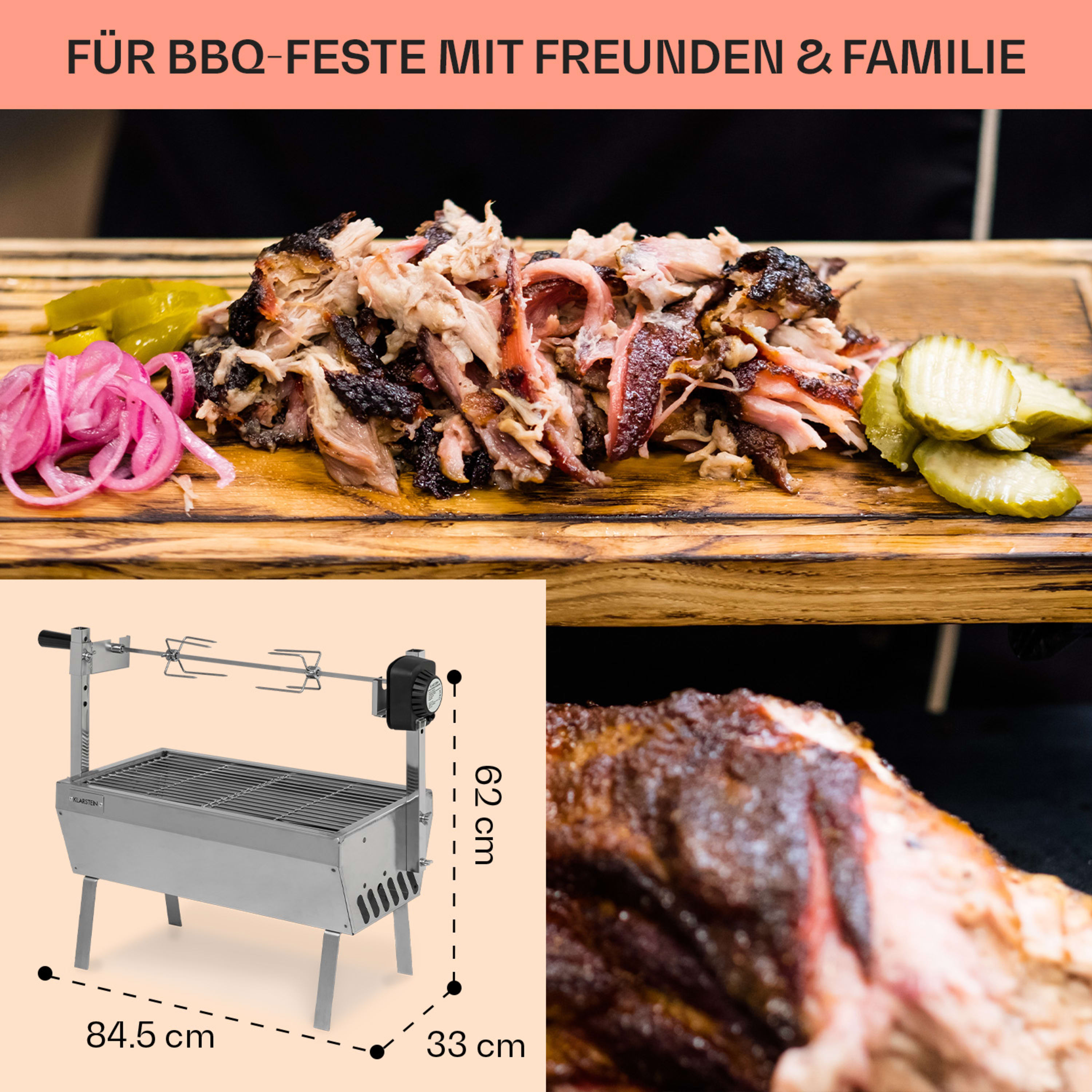 Der Sauenland Mini von Klarstein ist ein kompakter, vielseitiger und hochwertiger Rotisserie-Grill zur Zubereitung saftiger Grillspezialitäten.