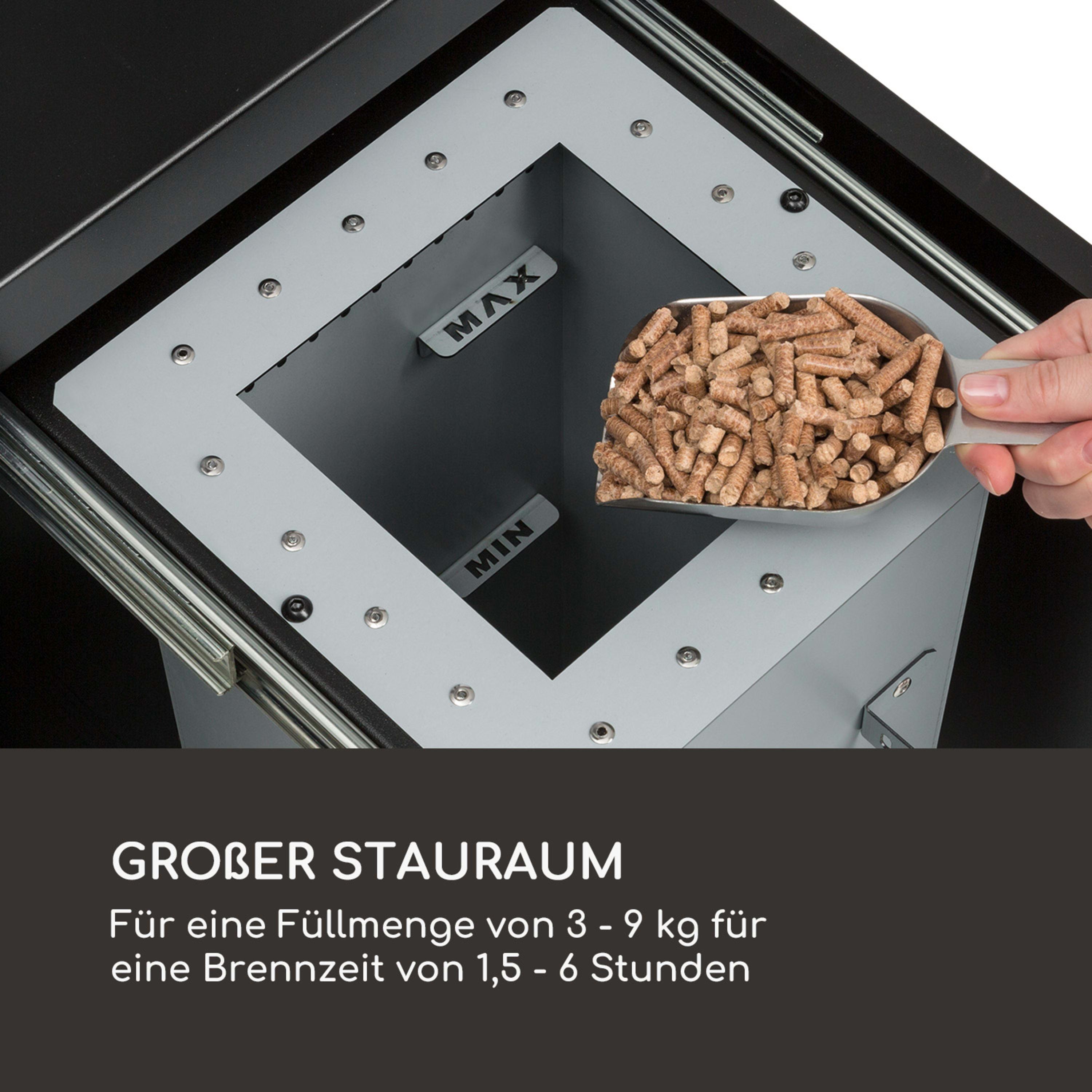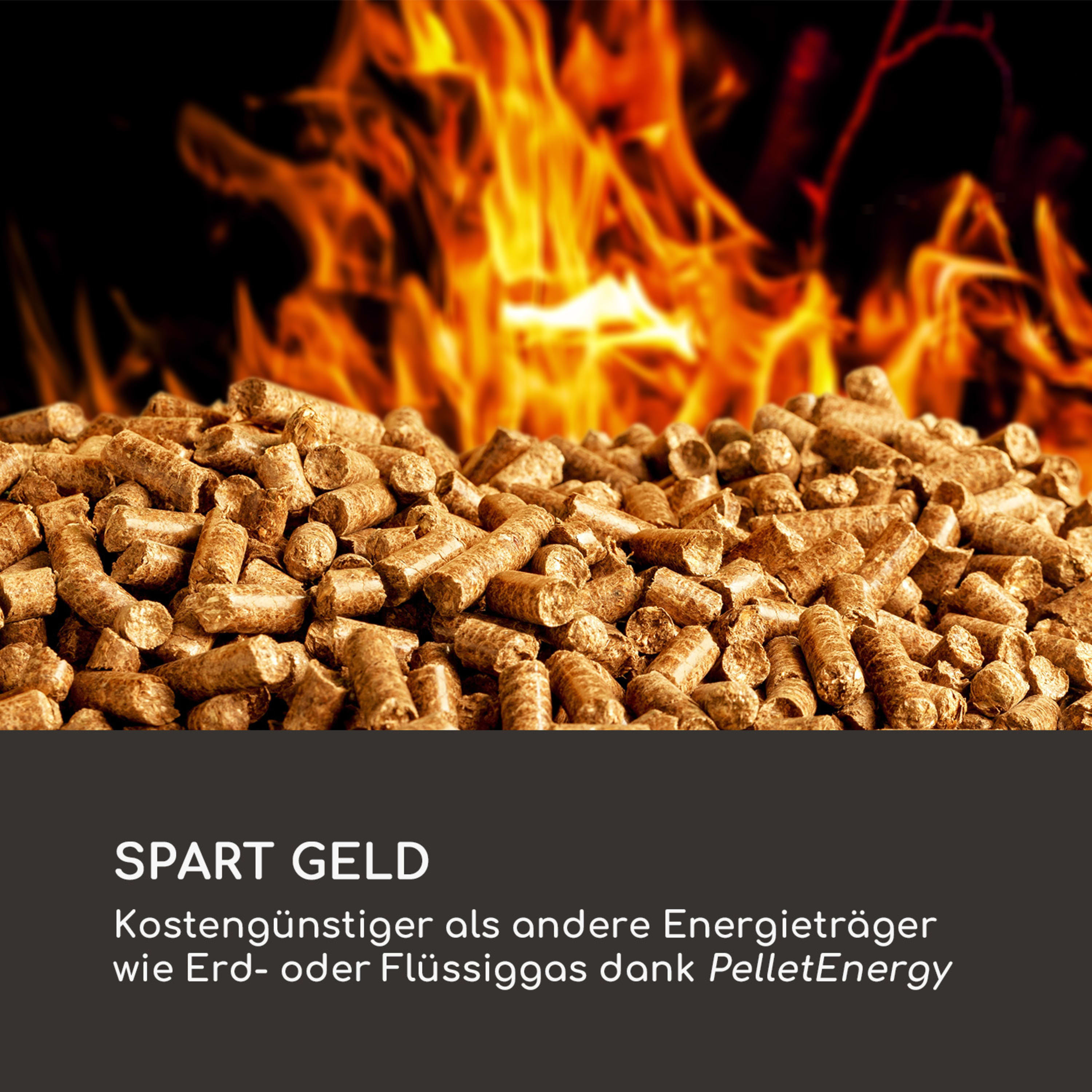 Der blumfeldt Heat Hunter Pellet-Heizpilz erzeugt besonders energieeffiziente Wärme und ist mit einem CO²-Anteil von nur 4,7 % sogar CO²-neutral. Darüber hinaus sind Pellets im Vergleich zu anderen Energieträgern, wie Flüssiggas und Erdgas kostengünstiger und schonen dank PelletEnergy nicht nur die Umwelt, sondern auch den Geldbeutel. Mit zwei leichtgängigen Bodenrollen kann der Heat Hunter zudem einfach transportiert und versetzt werden, während ein stabiles Sicherheitsgitter den Glaszylinder vor ungewolltem Zugriff abschirmt. Die korrosionsbeständige Bauweise aus Edelstahl macht das Gerät besonders langlebig und für die Aufstellung in Außenbereichen geeignet. Für ein sicheres Heizerlebnis werden dem Lieferumfang ein Paar Schlüssel zum praktischen Verschließen der Heizklappe sowie Sicherheitshandschuhe für ein sicheres Entleeren des Pelletbehälters beigelegt.