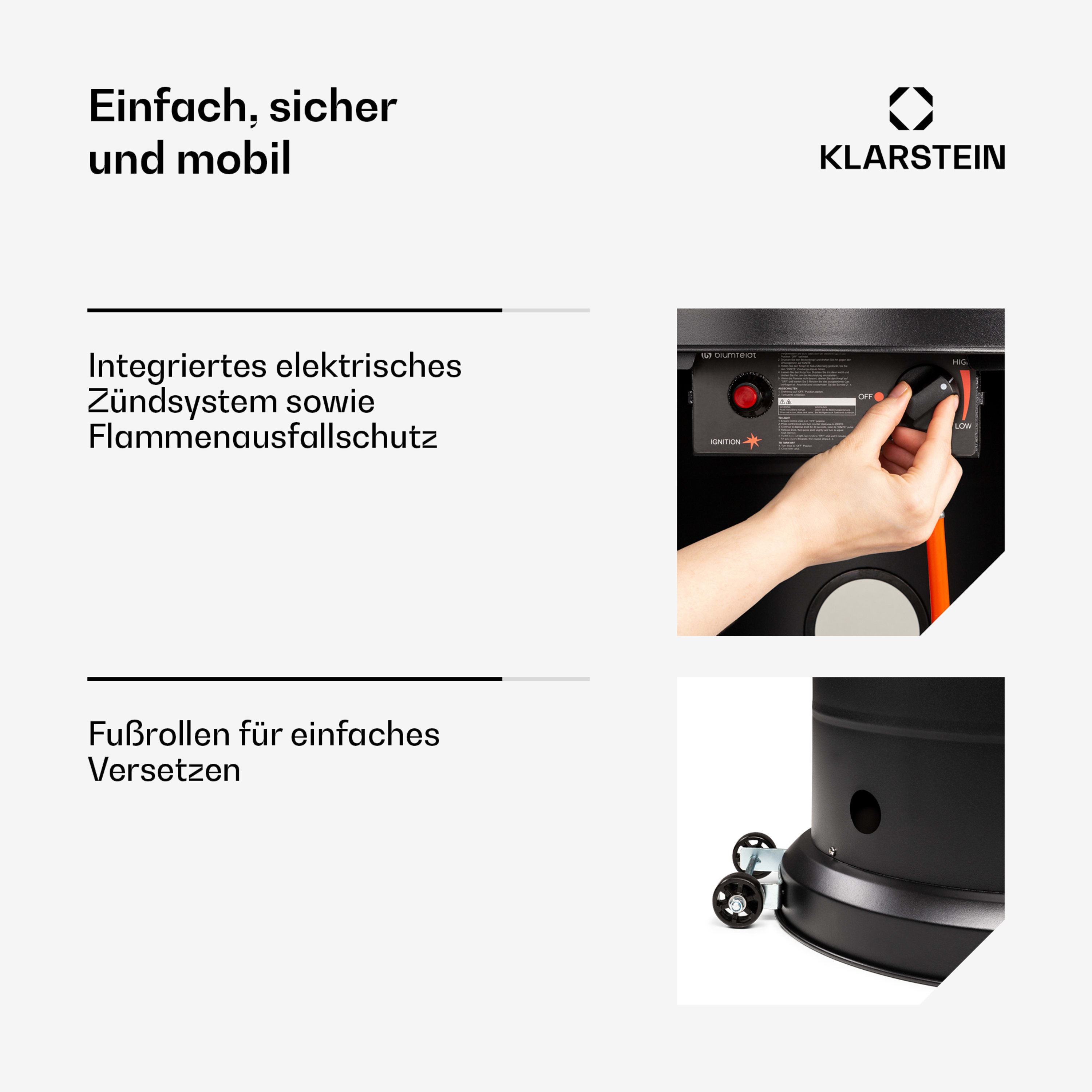 Sonne to go. Die portable Wohlfühltemperatur für draußen! Der blumfeldt Goldflame Terrassenheizstrahler macht der ungemütlichen Außentemperatur einen Strich durch die Rechnung und sorgt für ein angenehmes Klima auf der Terrasse, Veranda oder im Garten.