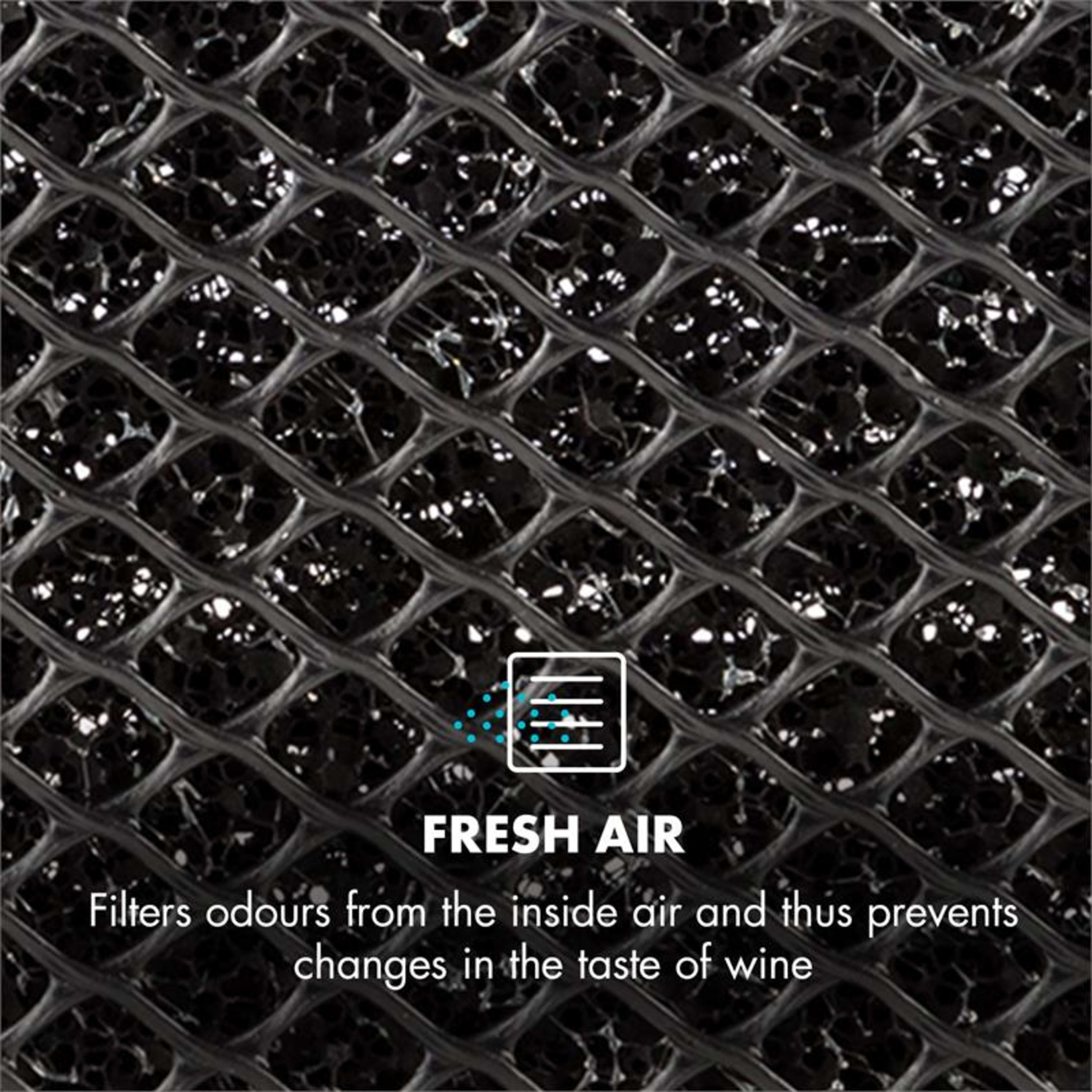 Gute Luft im Weinkühlschrank ist eines der fünf wichtigsten Kriterien für die Weinlagerung. Damit diese auch im Weinkühlschrank gewährleistet ist, filtert der Klarstein Aktivkohlefilter Gerüche aus dem Innenraum und verhindert so, dass diese durch den Korken in Ihre edlen Tropfen eindringt. Der Austausch der Filter ist einfach und unkompliziert dank Steckhalterung: Einfach alten Filter ausklinken, neuen Filter einrasten und fertig. Minimaler Aufwand für maximnale Frischluft im Weinlagerschrank.