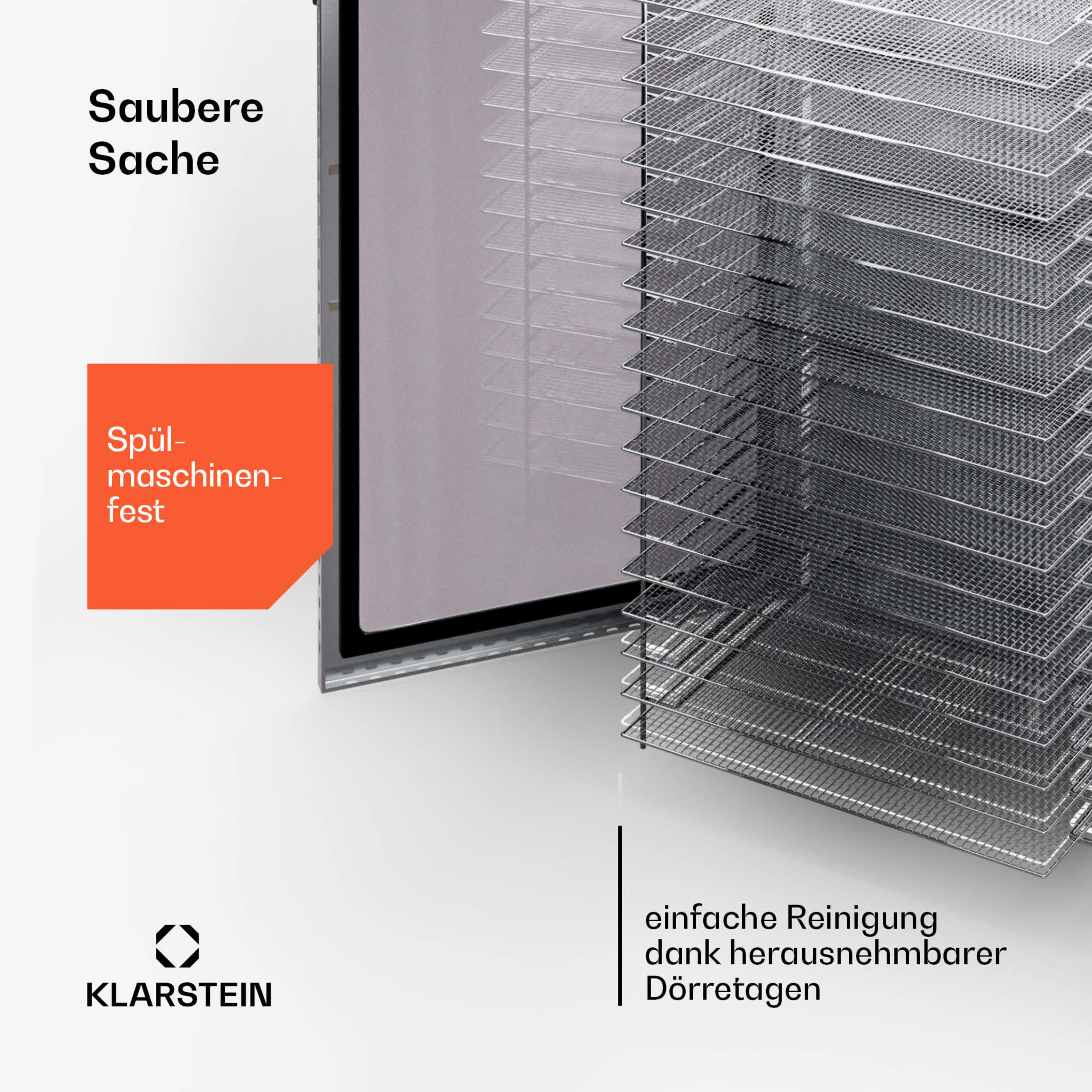 Sofort betriebsbereit: inklusive 20 rostfreier, leicht zu reinigender Edelstahleinschübe