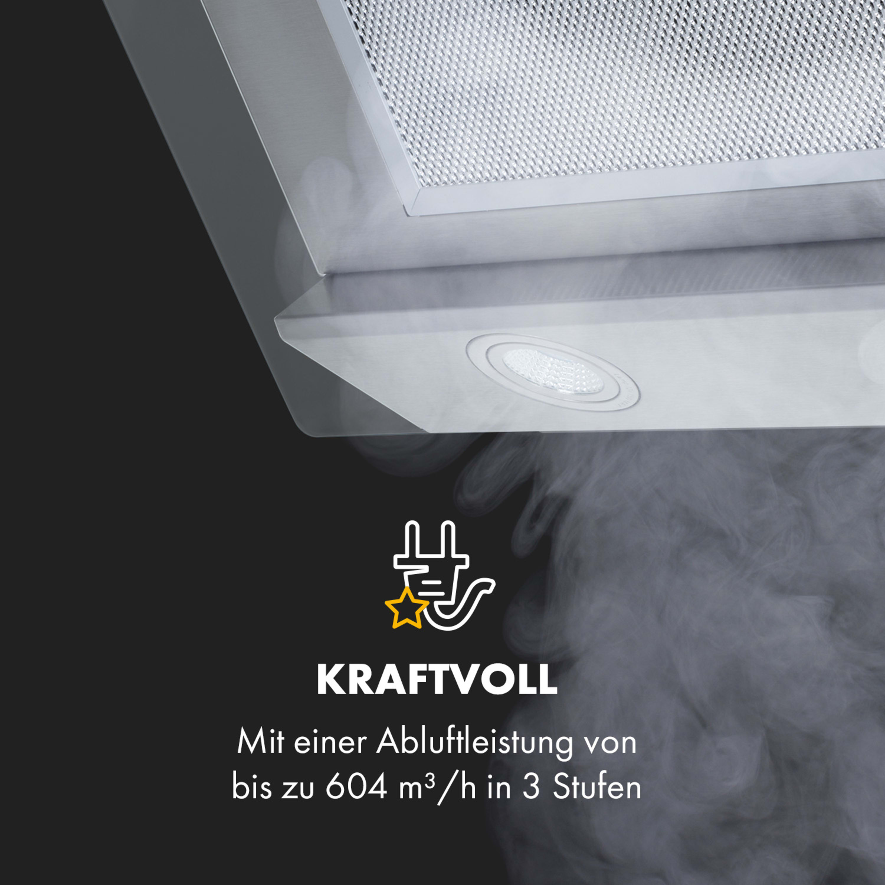 Die Abzugshaube ist sehr laut. Auf Stufe 2 kann man kein Gespräch mehr führen, wenn man am Herd steht. Die Saugleistung ist dafür super. Mit speziellen Edelstahlreiniger gut zu reinigen. Für den Preis bin ich zufrieden, würde aber nächstes Mal mehr Geld ausgeben...