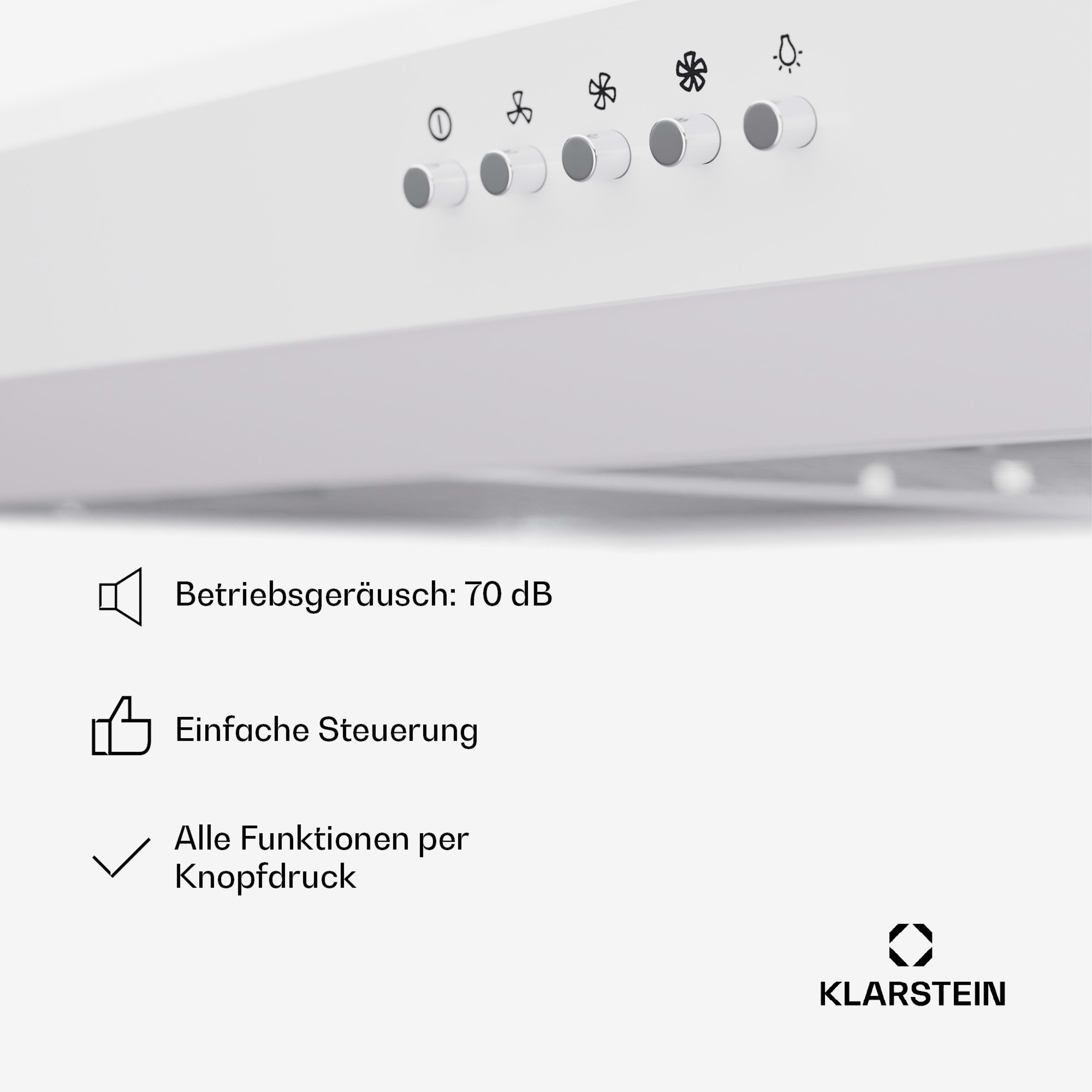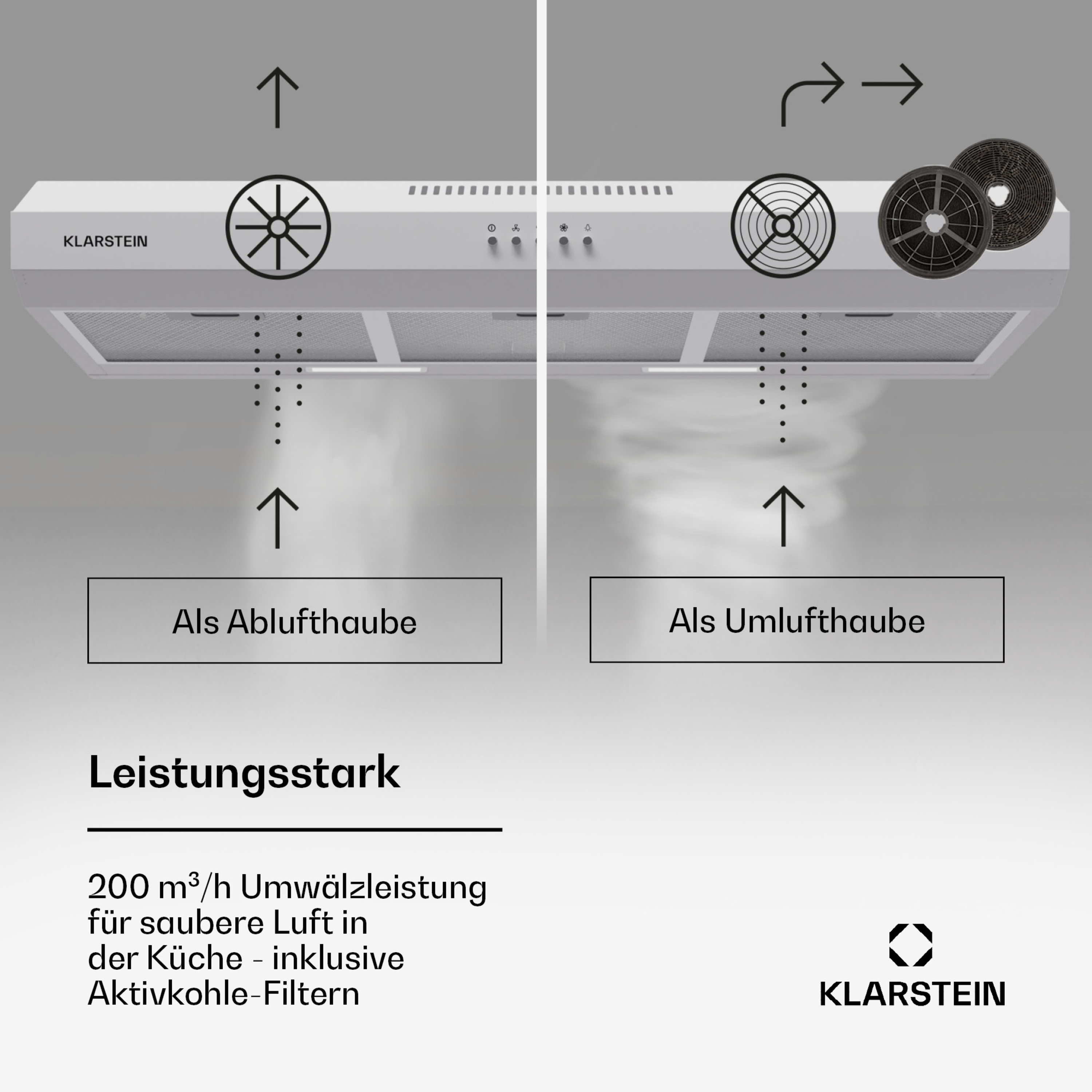 Die Klarstein Contempo 90 Dunstabzugshaube vereint Leistung und Effizienz in einem kompakten Design. Mit einer Abluftleistung von 200 m³/h bietet sie optimale Leistung in kompakten Maßen. Ihr platzsparendes Format von 15 cm Höhe und 90 cm Breite passt perfekt über Kochflächen und unter Hängeschränke, ideal als Unterbau-Dunstabzugshaube.
