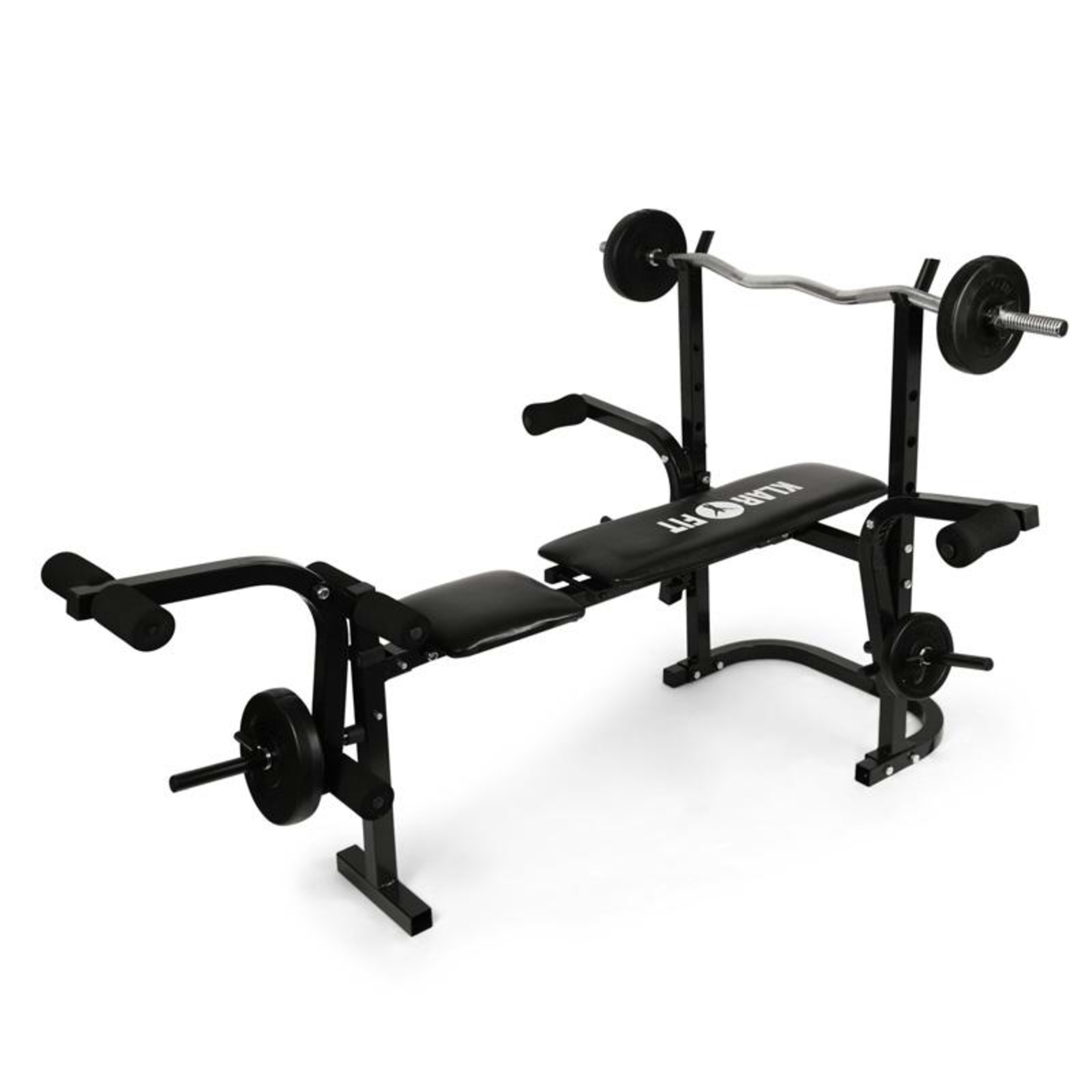 banc de muscu obtenu pour remuscler mon corps après accouchement, il est complet car il permet le travail de tous les muscles.Parfait pour les abdominaux, mais également les bras, les cuisses, les dorsaux.Il est très confortable, car les zones de coussins sont bien rembourrées.Montage facile et assez rapide ( environ 40 minutes seule) et le tout parait bien solide. La notice ne donne pas d'exemples d'exercices, c'est un petit plus qui serait apprécié, mais on trouve des idées très facilement sur internet.