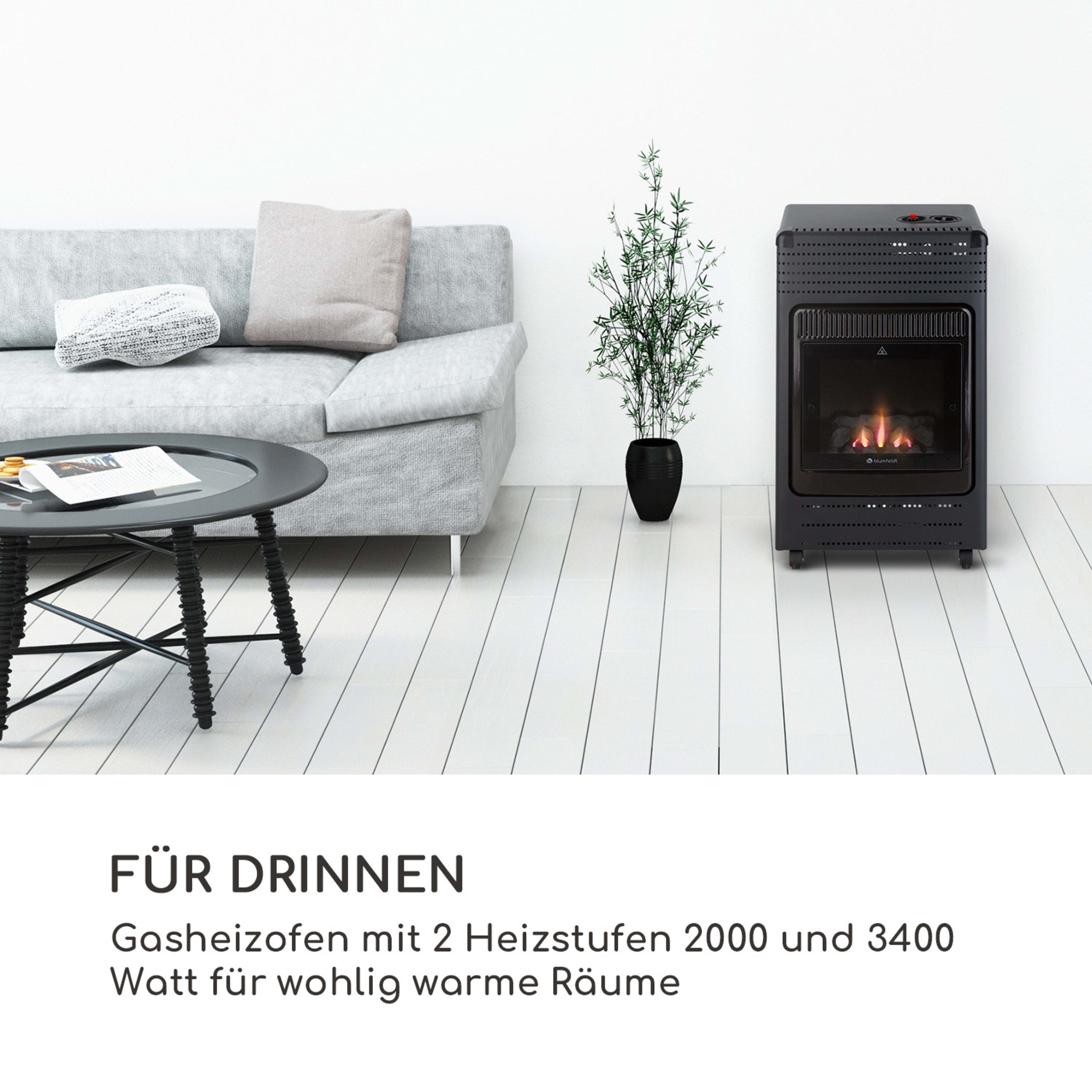 Für drinnen: Gasheizofen mit 2 Heizstufen 2000 und 3400 Watt für wohlig warme Räume