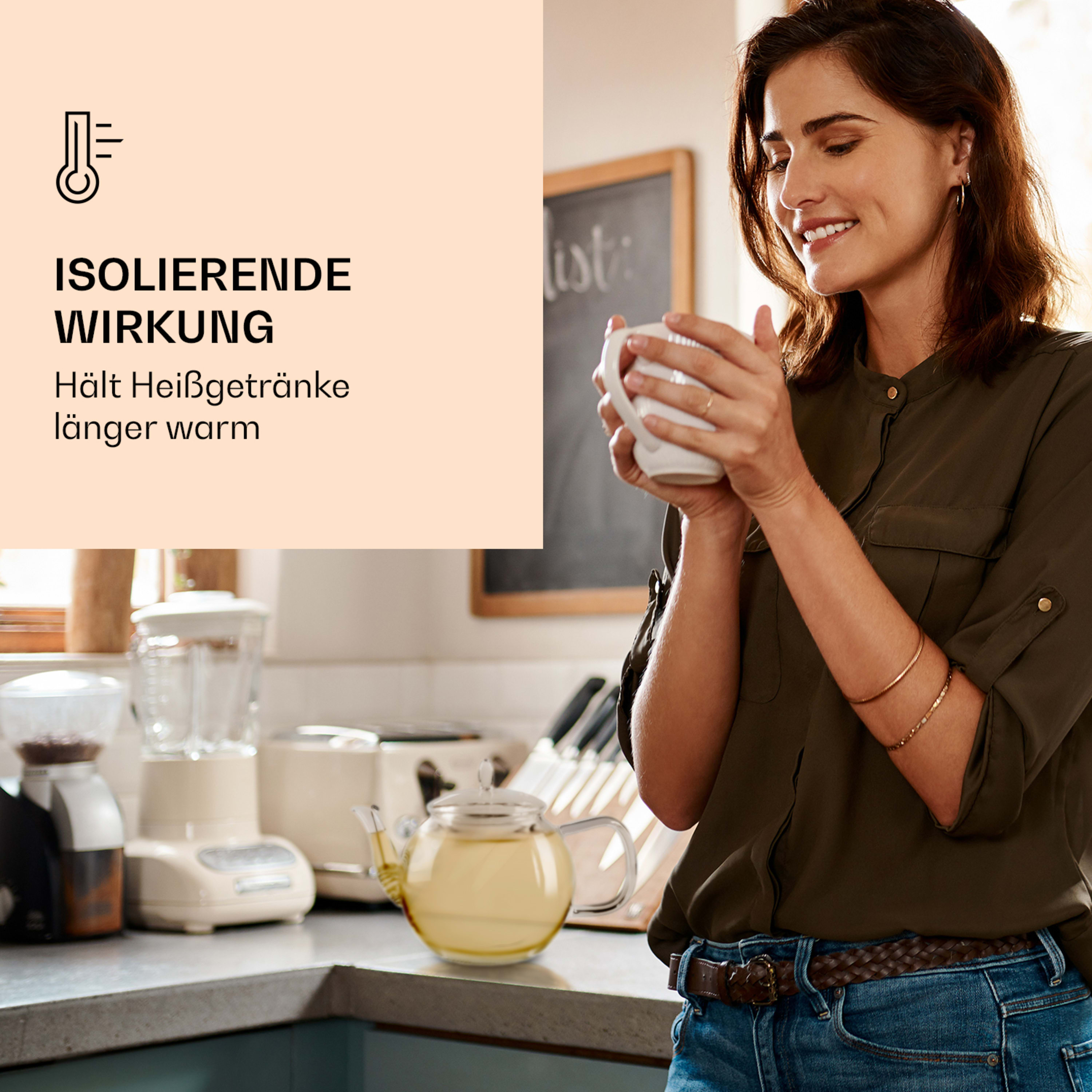 Ein verführerischer Anblick auf dem Teetisch: Die edle Glaskanne Bedida von Feelino by Klarstein versprüht durch ihre bauchige Form und den harmonisch geformten Glasdeckel pure Nostalgie. Durch die mundgeblasene Herstellung aus edlem Borosilikatglas ist hier jede Teekanne ein Unikat. Neben einzigartiger Glasqualität mit hoher Beständigkeit und guter Wärmspeicherung besticht hier auch ein praktisches und zugleich dekoratives Accessoire: Im geschwungenen Auslauf sitzt ein spiralförmiges Teesieb aus Edelstahl - so bleibt loser Tee beim Ausgießen in der Kanne. Dank des hochwertigen Borosilikatglases entsteht ein Thermoeffekt, der deinen Tee lange warm hält.