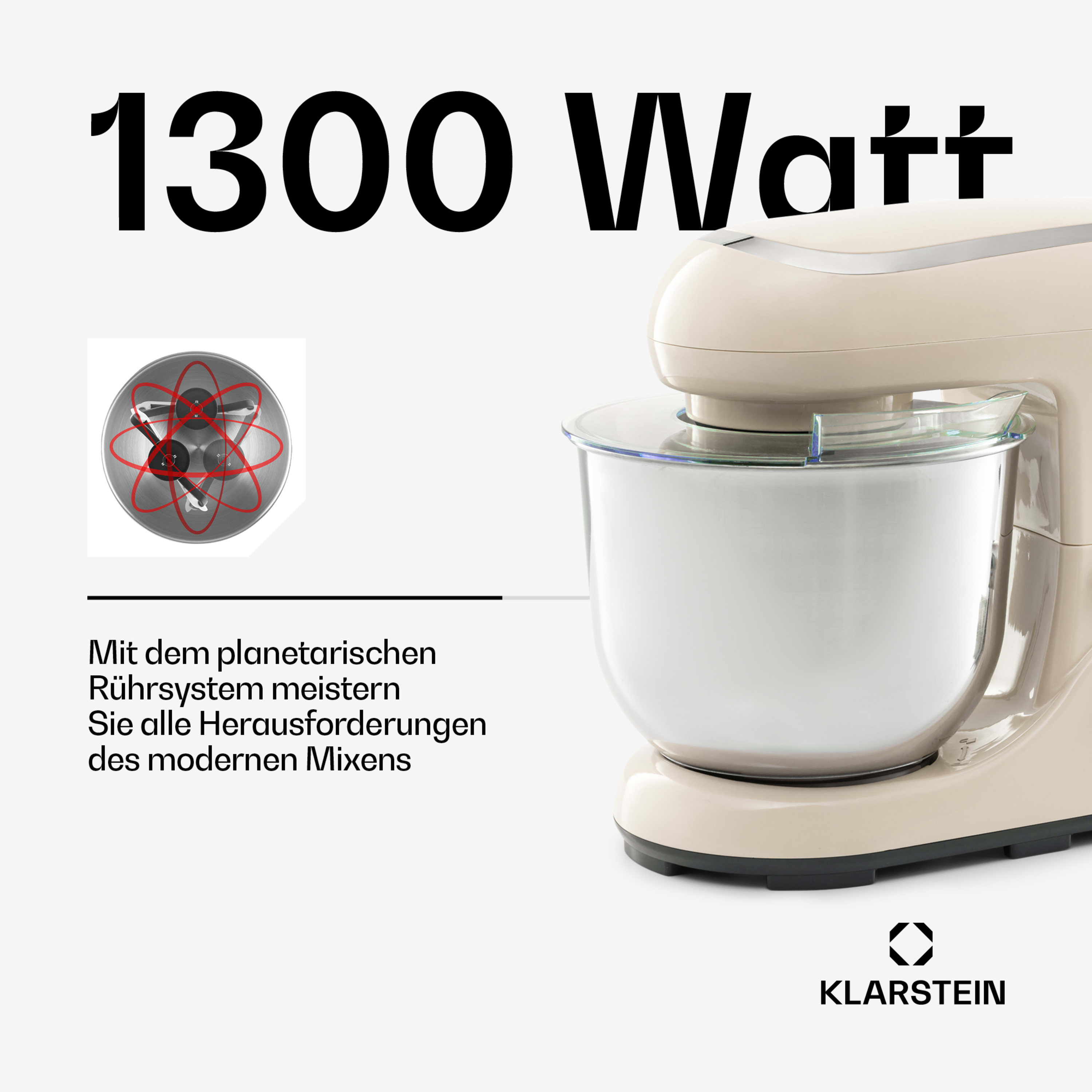 Kraftvoll und kompakt: Stilvolles Rühren, Kneten oder Aufschlagen ist mit der Klarstein Bella Pico 2G Küchenmaschine ganz einfach. Mit 1300 Watt, 6 Leistungsstufen und unserem planetarischen Rührsystem meisterst du alle Herausforderungen der modernen Rührkunst. In der 5 Liter großen Edelstahlrührschüssel finden alle Zutaten perfekt gemischt zusammen. Die kompakten Maße und das farbenfrohe Design runden das Gesamtpaket ideal ab.