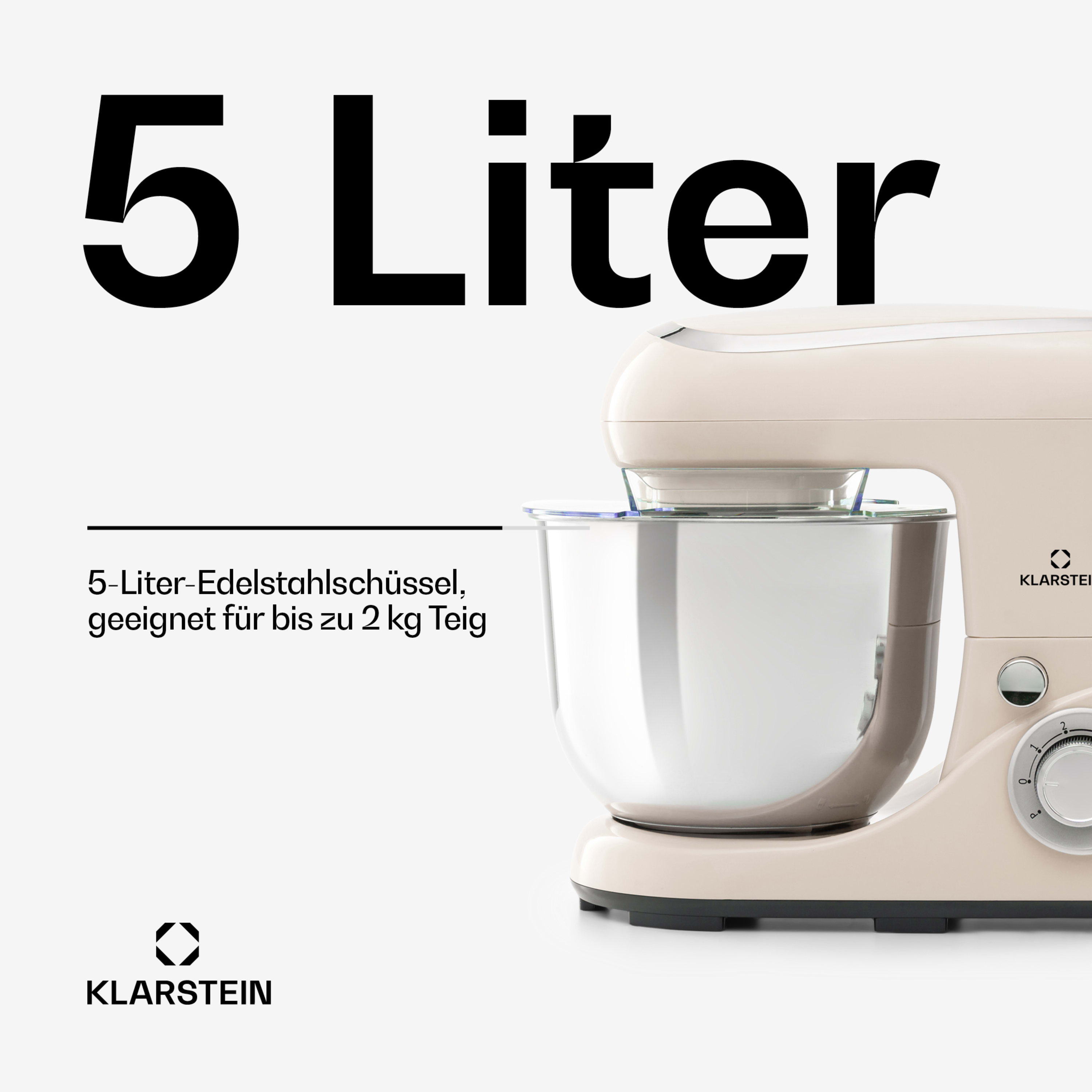 - Fassungsvermögen Rührschüssel: 5 Liter
