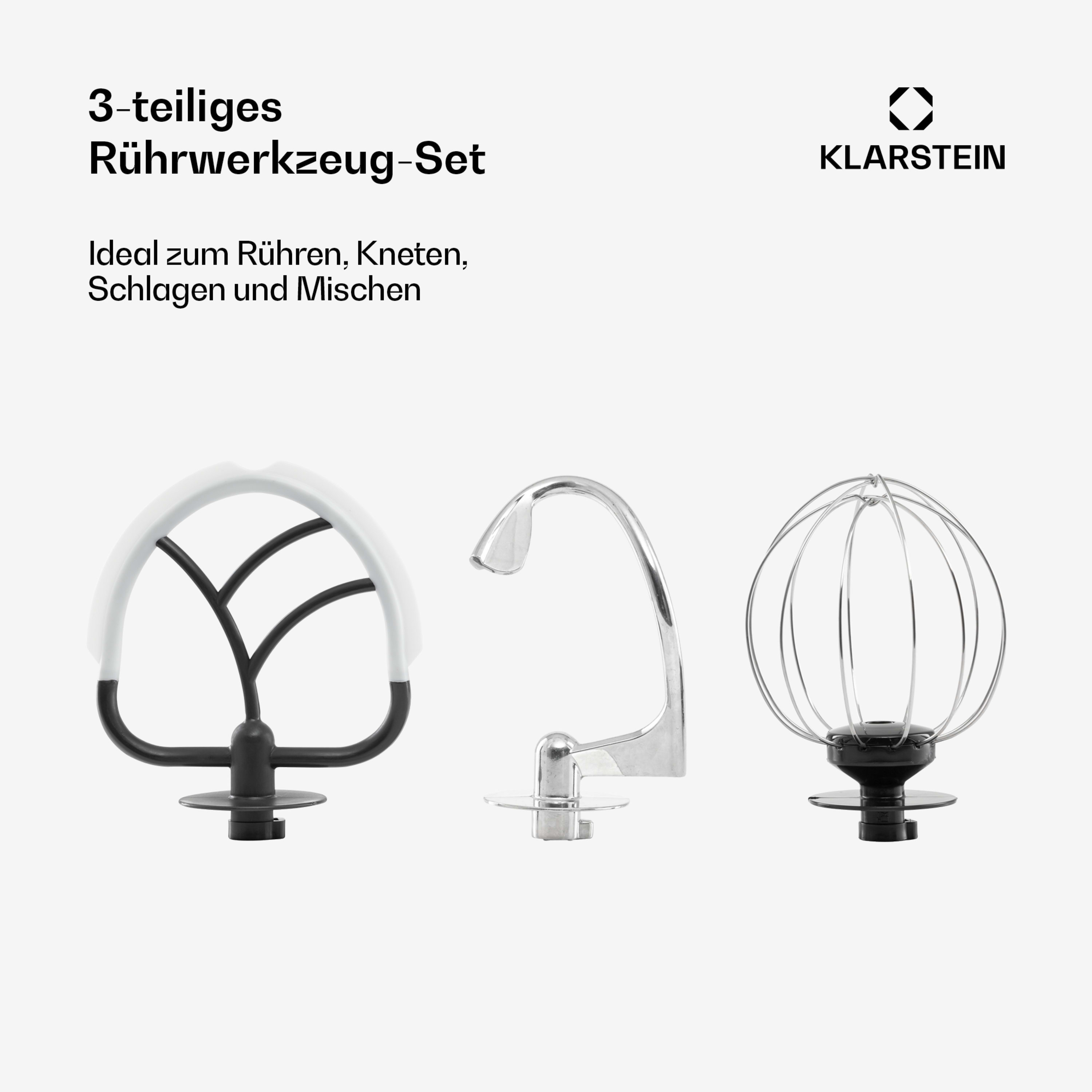 - 3 Rührelemente: Knethaken / Rührhaken / Schneebesen