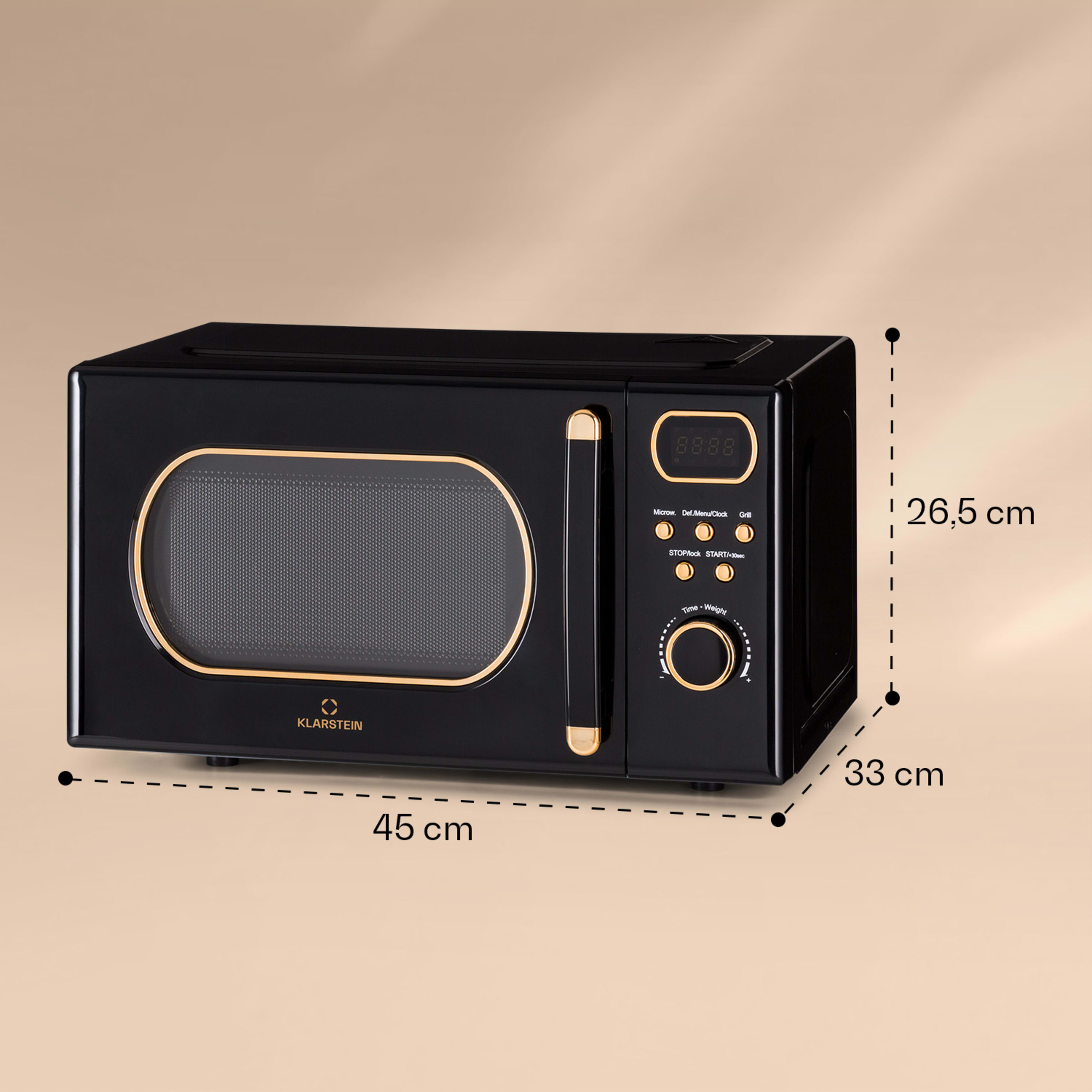 - Maße Mikrowelle: ca. 45 x 26,5 x 33 cm (BxHxT)