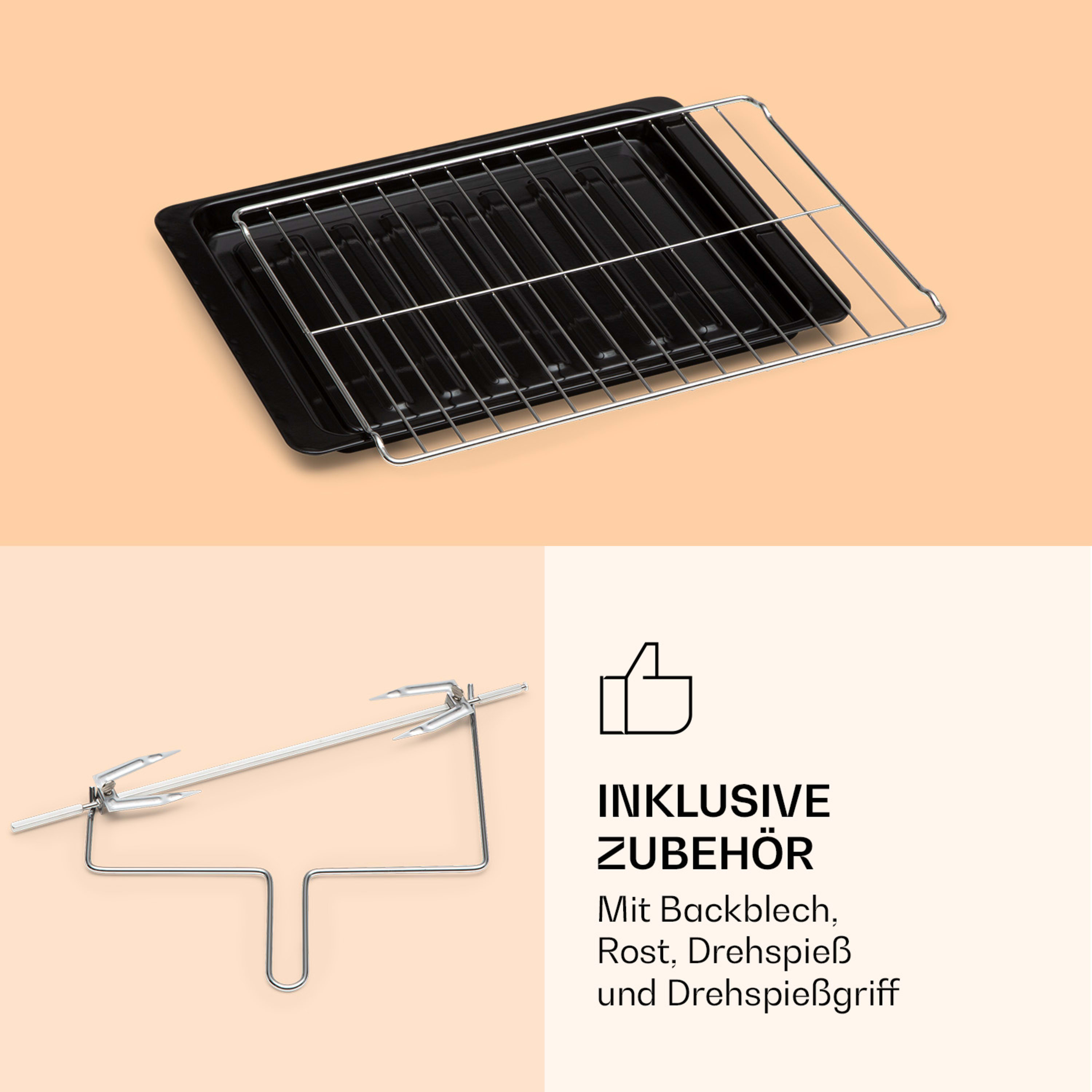Vom Gerät selbst bin ich begeistert. Alles funktioniert einwandfrei. 1 Stern Abzug gibt's, weil ich echt entnervt bin von der suche nach einem passenden backblech bzw rost! Ich habe bereits 5 verschiedene bestellt und keines hat gepasst. Auch bei klarstein selbst gibt es keines zu kaufen, das ist ein echter Minuspunkt!