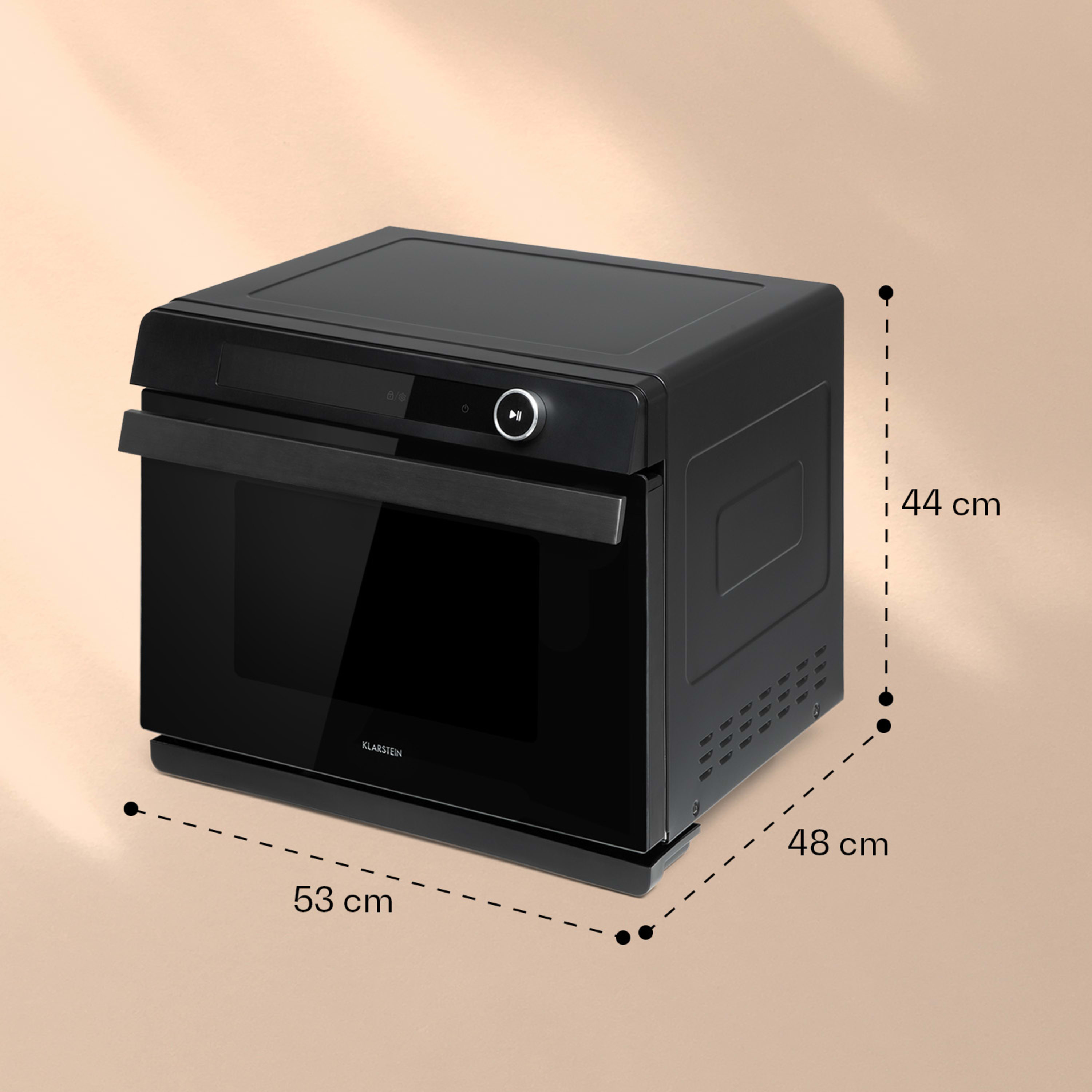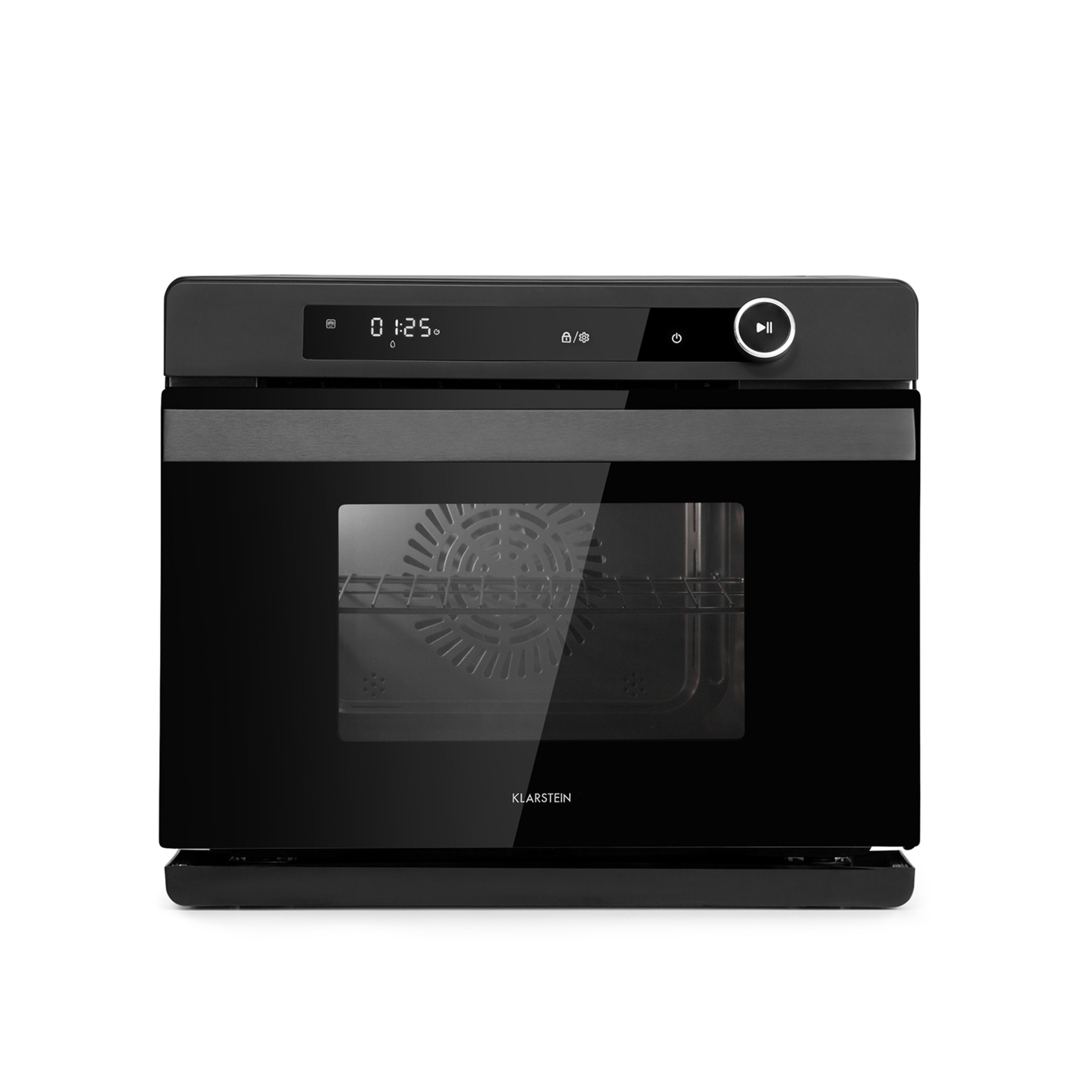 Mal richtig Dampf ablassen! Mit dem Klarstein VaporChef Dampfbackofen kannst du Fleisch- und Gemüsegerichte auf den Punkt genau dünsten, um eine Vielzahl der natürlichen Vitamine und Mineralien zu erhalten. Dafür besitzt der Dampfbackofen einen großen 1,5 Liter-Wassertank und arbeitet beim Dampfgaren mit leistungsstarken 1100 Watt. Das Gerät kannst du auch ganz normal als Backofen mit 2400 Watt nutzen: Dank maximaler Temperaturen bis 230 °C, Ober- oder Unterhitze sowie der Möglichkeit, die Temperatur gradgenau einzustellen, lässt der Backofen keine Wünsche offen.