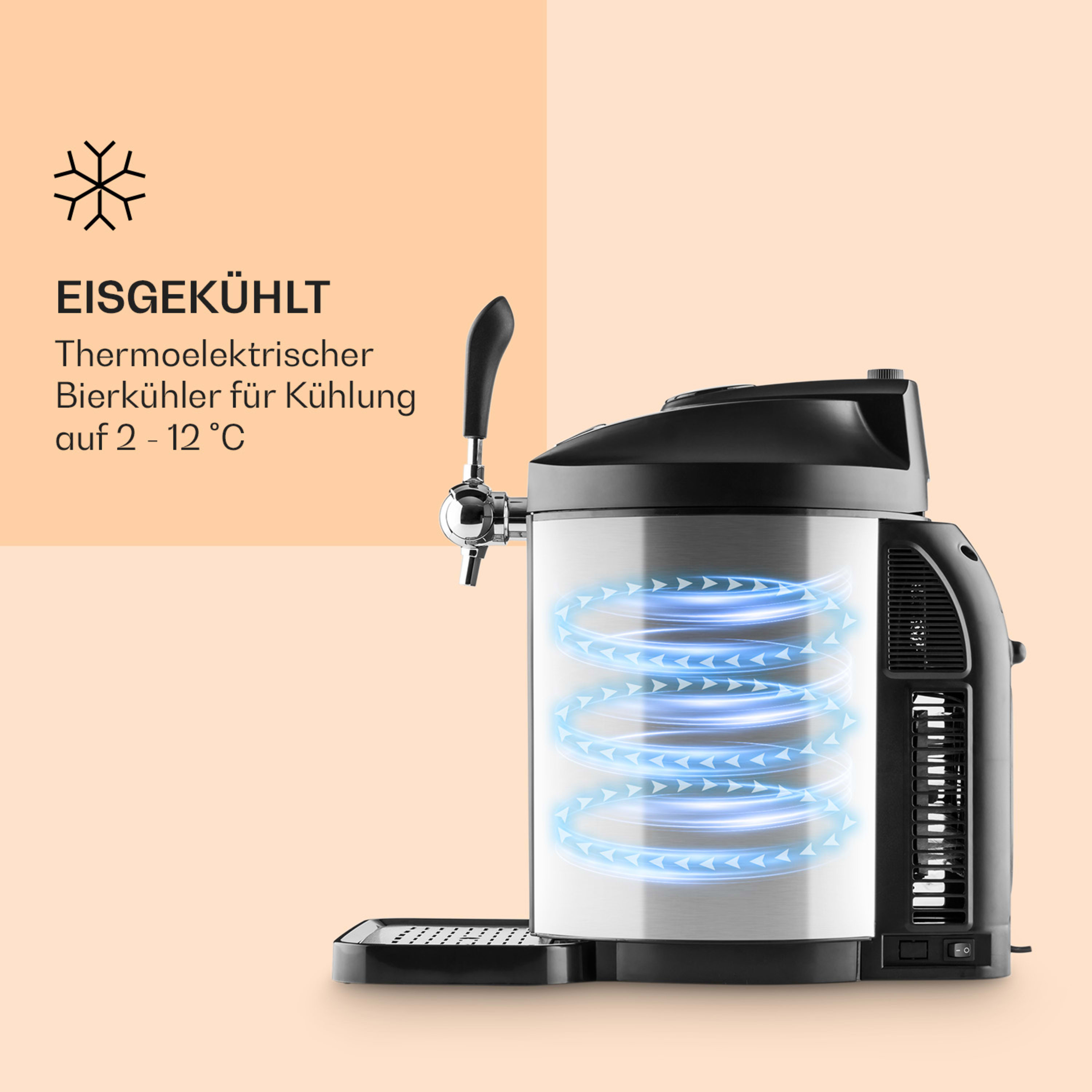 Die Klarstein Skal Bierzapfanlage sorgt für gekühlten Biergenuss aus allen 5 Liter Fässern. Dank CO2-Gaskartuschen-Drucksystem erhält der Gerstensaft immer den richtigen Druck für eine herrliche Schaumkrone. Damit du auch Heineken-Fässchen - für die kein CO2-Druck nötig ist - anzapfen kannst, wird ein entsprechender Anschlussadapter gleich mitgeliefert.