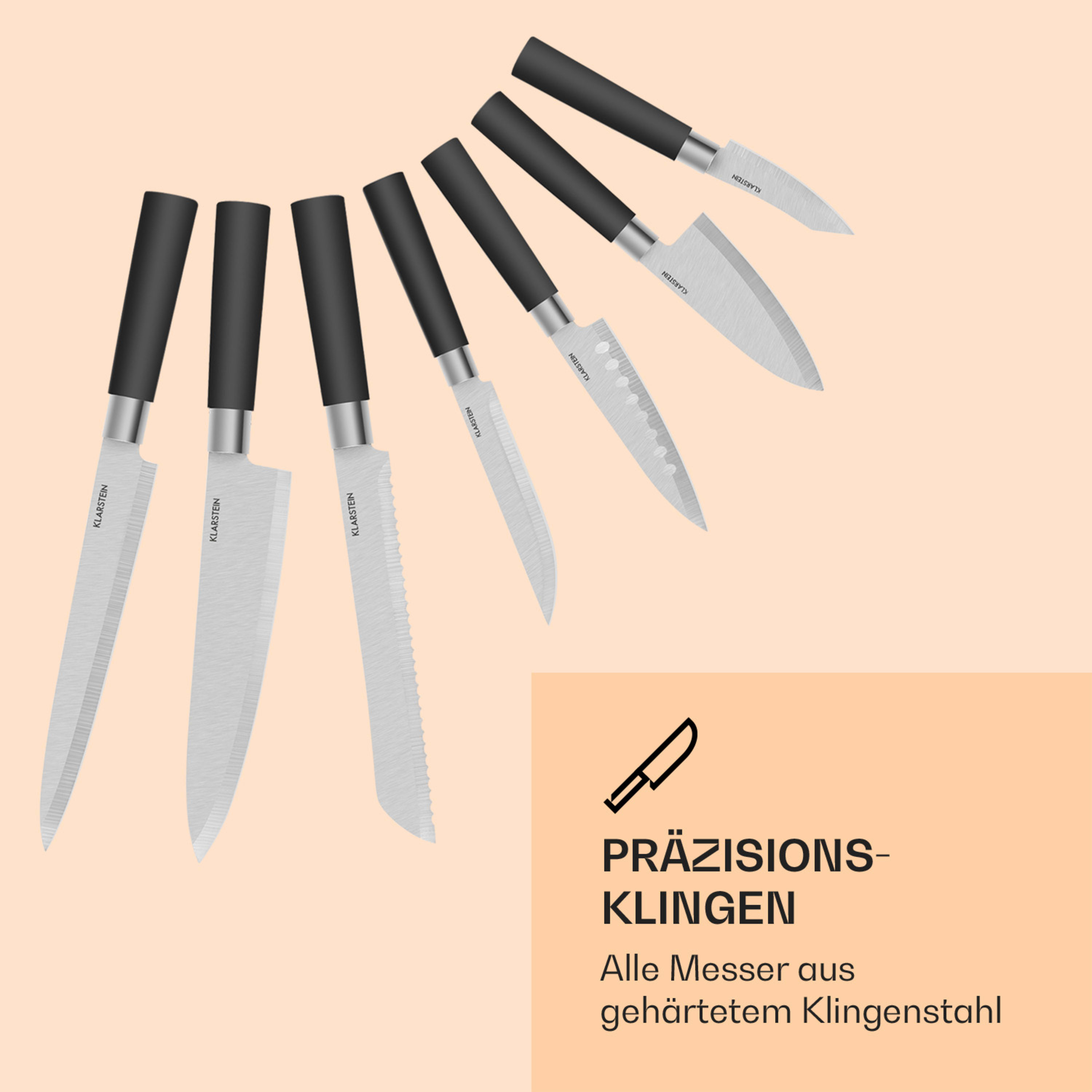 7 verschiedene Messer: Präzisionsklingen aus gehärtetem Klingenstahl