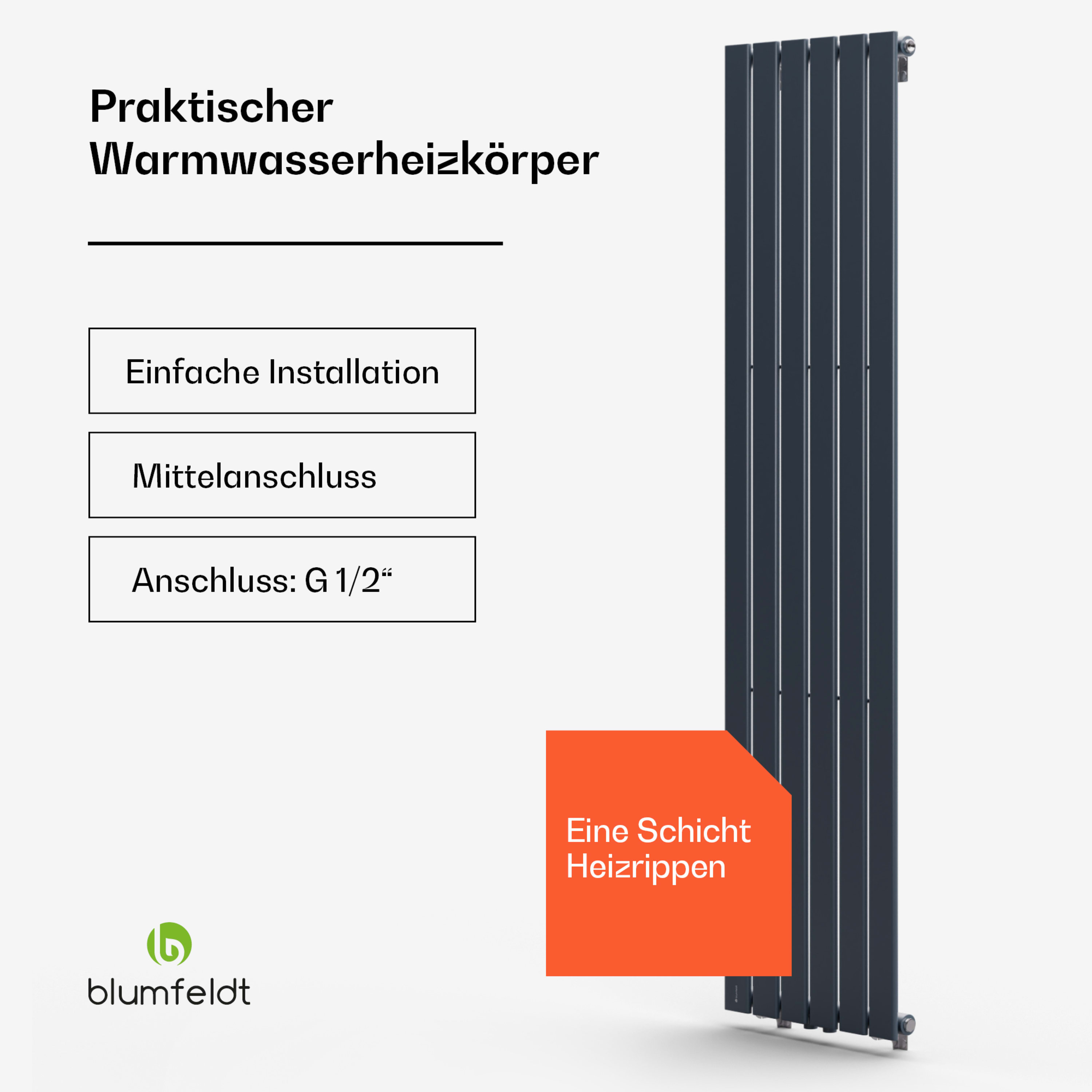 Wohlige Wärme für dein Zuhause in modernem Design: Der blumfeldt Ontario 45 × 180 Heizkörper bringt das Bad auf Wohlfühltemperaturen und macht dabei eine gute Figur.